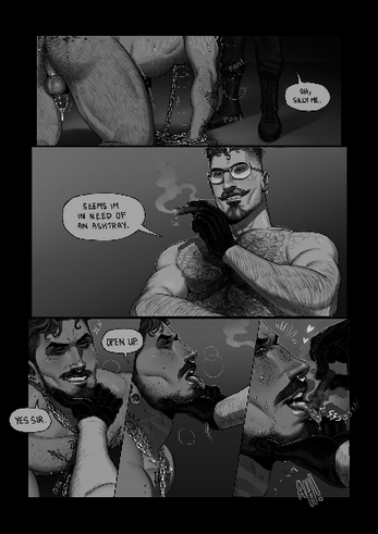 A short (15 page) erotic comic featuring old men, cigars, caning, blood, sweat, leather, chains, the works.